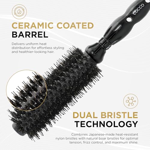 COCCO Black Series Ceramic Boar Brush S4, Hair Styling Brush with Dual Bristle Technology, Ceramic-Coated Barrel, Ergonomic Design