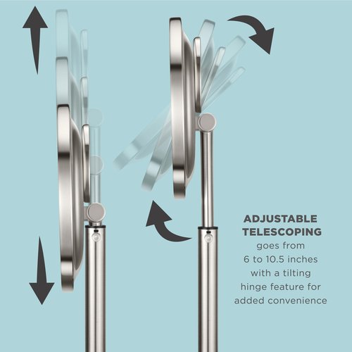- Picture Perfect Make-Up Mirror: This single-sided lighted makeup mirror features 1X magnification & 5X spot mirror perfect for tweezing & grooming with precision. The adjustable telescoping design goes from 6 to 10.5 inches to fit in any space.