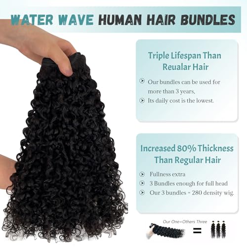- Our Water Wave Curly Bundles 80% Thicker Than Regular Bundles: We only Sell High-End Raw Human Hair Bundles. Our One Bundles Are Equivalent To Three Regular Human Hair Bundles. With Careful Care, The Bundles Can Be Used For More Than 3 Years. Our 3 Bundles = 280 Density Wig.