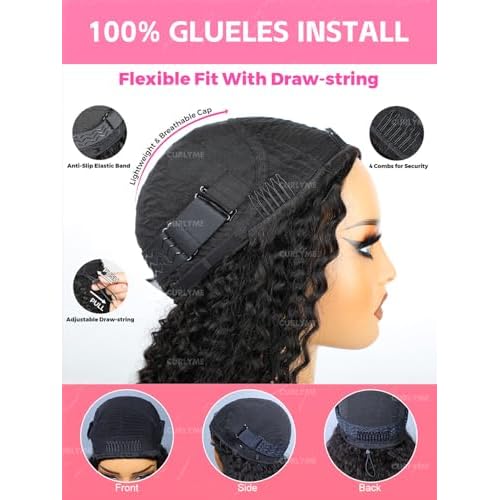 Curlyme Drawstring Half Wig Human Hair Flip Over Kinky Straight No Lace Glueless Drawstring Invisible Hairline Beginner Friendly Wear Go Wig For Women Clip In Headband Wig195% Density 16 Inch