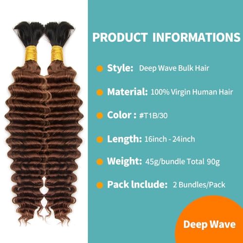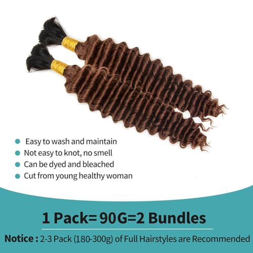 - Deep Wave Bulk Braiding Color&Weight:Natural Color Deep Wave Boho Braiding Hair Lengths from 16-24 Inches.2 Bundles 90g Per Pack.With popular colors including color2#,4#,27#,30#,1B/30,If You Like Full Head Braids,Recommend Buying 3-4 Packs