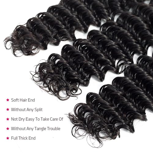 - Hair Bundles Material:12A Grade Unprocessed Virgin Human Hair Deep Wave Bundles, Soft and Bouncy,Elegant and Comfortable to Make Quick Weave