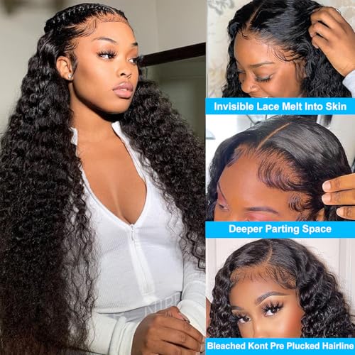 - Full Frontal Deep Wave Wig Human Hair Wig Quality:13x4 HD Transparent Swiss Lace, blends perfectly into your skin, soft and breathable, 180% density deep curly lace front wigs human hair Can Make Baby Hair, Pre Plucked