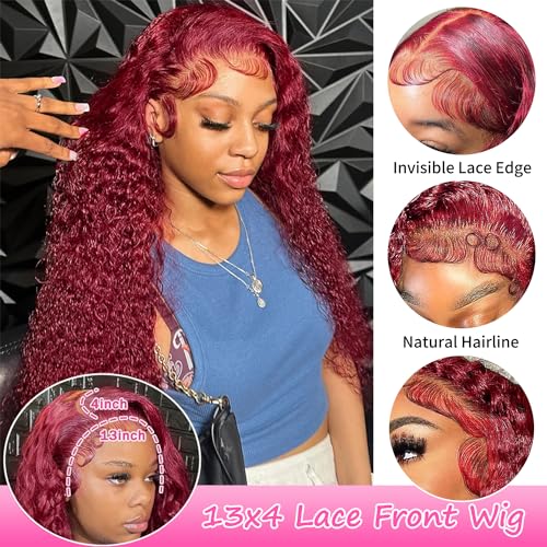 - [ 200% density :] Thick deep wave lace front wigs human hair, soft and silky wet and wavy lace front wigs human hair, you always keep perfect in anytime, anywhere with this burgundy wig!
