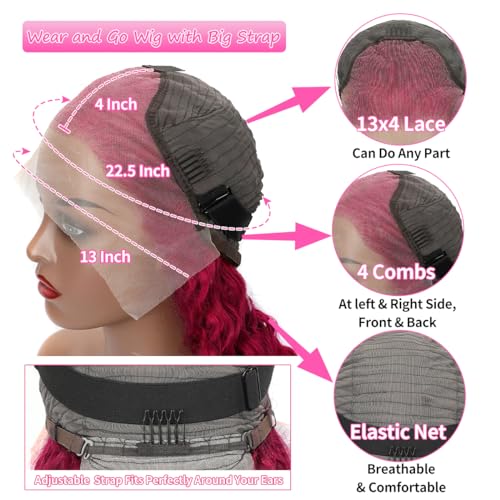 - [ Easy To Install And Take Off:] Red lace front wigs human hair, with a wide elastic bandinside, not easy to fall off, which can reduce the use of glue, comfortable wearing and more convenient for daily wear. Medium size (22-22.5 inch) fit most people.