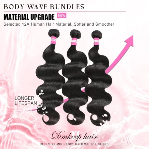 - PREMIUM BRAZILIAN VIRGIN HUMAN HAIR: Healthy body wave human hair bundles?100% Brazilian unprocessed raw virgin human hair, sourced directly from young women. Dmkeep human hair body wave bundles feels bouncy, soft and silky, made with high-quality raw human hair. It offers great elasticity and natural curls, ideal for enhancing your beauty look