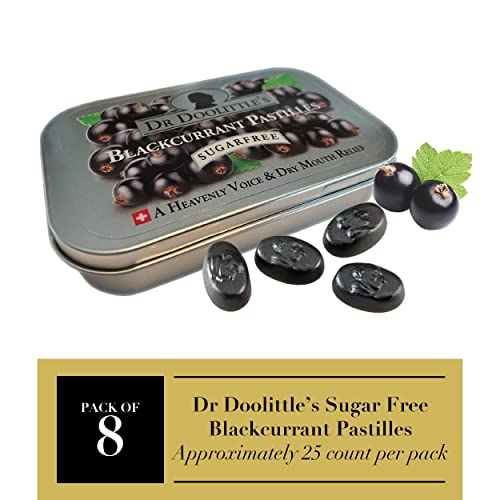 DOOLITTLE Dr Sugar Free Soft Fruit Pastilles for Voice and Throat, Blackcurrant Flavor, 2.12 Ounce Tin, Approximately 25 Count Package, 8 Pack