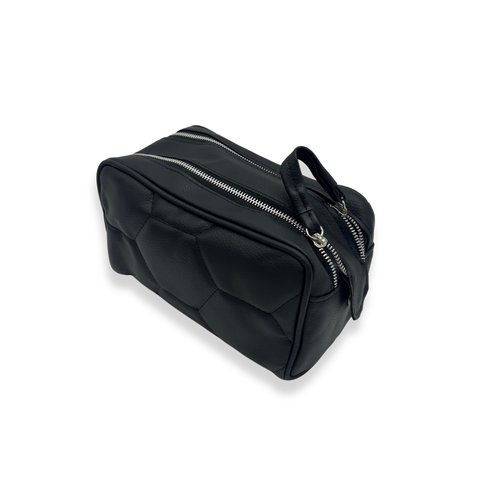 Double Zipper Toiletry Pouch in Black Faux Leather (Balr Inspired) Made in Argentina. Travel organizer - World Cup - Soccer hexagon ball design
