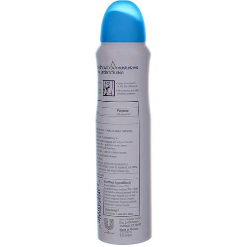 Details: Have you been wondering how to get soft armpits? Try Dove Dry Spray Antiperspirant Deodorant Nourished Beauty 3.8 oz. A pampering antiperspirant spray infused with a crisp apple, citrus and floral powder fragrance, it leaves your underarms feeling soft and smooth. This antiperspirant dry spray goes on completely dry too, meaning you can save time in the mornings by getting dressed immediately after application. This Dove Dry Spray, with Dove 1/4 moisturizers and an alcohol (ethanol) free, dermatologically tested formula, is kind on skin and helps delicate underarm skin recover from the irritation that regular shaving can cause. After a few uses, you'll notice not only that your underarm skin looks and feels smoother, but that this spray goes on completely dry too - a daily time-saver that's handy when you're in hurry. Although it cares for your skin, this Dove antiperspirant deodorant doesn't compromise on antiperspirant protection. Dove Dry Spray Antiperspirant Deodorant Nourished Beauty keeps you dry and fresh all day with up to 48 hours of antiperspirant protection. To use, spray each underarm with two or three short bursts from about 6 inches away. This handy antiperspirant dry spray dries immediately, so you can get dressed without delay. At Dove, our vision is of a world where beauty is a source of confidence, and not anxiety. So, we are on a mission to help the next generation of women develop a positive relationship with the way they look - helping them raise their self-esteem and realize their full potential. Ingredients Active Ingredient: Aluminum Chlorohydrate (20.2%). Inactive Ingredients: Butane, Hydrofluorocarbon 152a, Cyclopentasiloxane, Isobutane, PPG-14 Butyl Ether, Helianthus Annus (Sunflower) Seed Oil, Disteardimonium Hectorite, C12-15 Alkyl Benzoate, Fragrance (Parfum), Propane, BHT, Octyldodecanol, Propylene Carbonate, Dimethiconol, Tocopheryl Acetate. Instructions Shake well before each use. Hold can 6 inches from underarm.