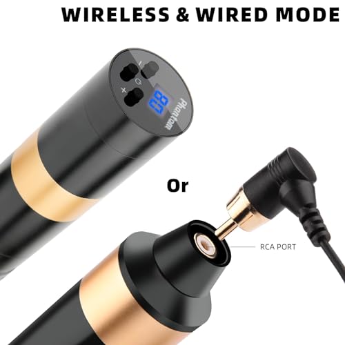 - ??WIRELESS & WIRED MODE:Phantom Tattoo Machine features RCA ports for dual assembly modes. Use the female RCA adapter to connect to a wired power supply or go completely wireless with the battery pack (assembled by the male RCA adapter), providing flexibility in your tattooing setup.