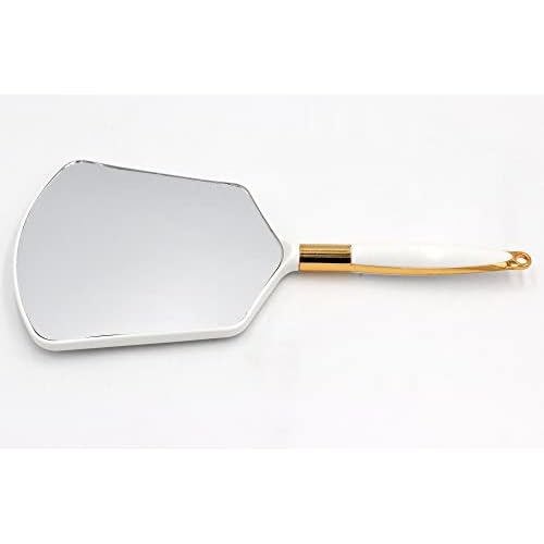 Eaoundm Hand Held Mirror with Handle, Makeup Hand Mirror with Hook Hole for Bathroom and Bedroom, Barbers Haircut Mirror for Home and Salon (6 W X6.8 L inchs, White)