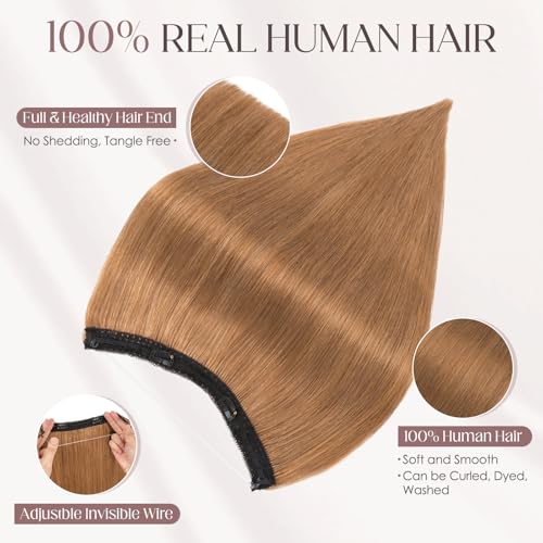 Elailite Halo Hair Extensions Real Human Hair for Women Light Brown Clip in Remy Hairpiece with Adjustable Invisible Wire 22 Inch 75G