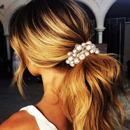 Fashey Pearl Hair Ties Beaded Ponytail Holder Fancy Scrunchies Decorative Hair Accessories for Women
