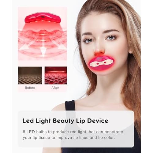 - LED Red Light: The red light lip device is made of 8 non-heat LED bulbs to produce red light that can penetrate your lip tissue to boost collagen, improve lip color, and reduce fine lines. Helping to smooth the texture of your lips and create a plumper, softer, more youthful look.