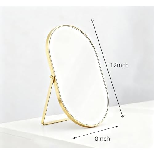 Feyarl Champagne Gold Oval Vanity Mirror 12x8 Inch Vertical Tabletop Makeup Mirror Decorative Standing Cosmetic Mirror for Bedroom Bathroom Desk Dresser
