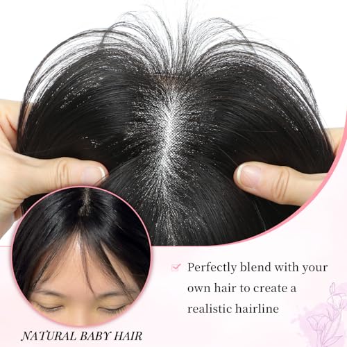 Fine Plus 12Inch Hair Toppers for Women Real Human Hair ? Mono Base 3"x5", Natural Black Virgin Quality, for Thinning Crown & Wide Parting, Lightweight & Breathable, Add Volume Can Be Curled