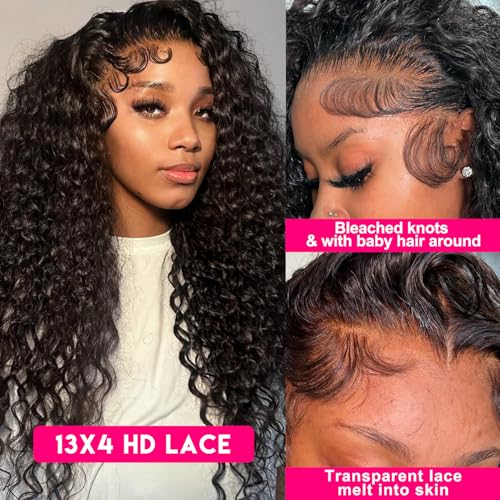 - ¡¼Lace Color¡½Deep Wave Lace Front Wigs Human Hair, 13X4 HD Transparent Lace, Soft and Breathable, Suitable for All Skin Types.