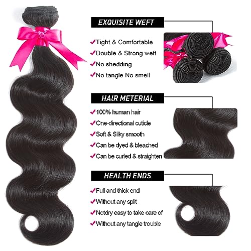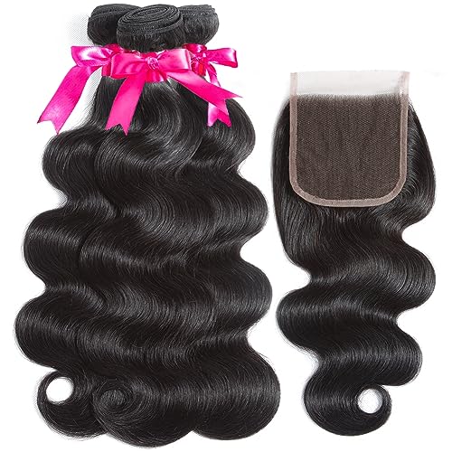 Flady Body Wave Brazilian Virgin Human Hair 3 Bundles With Closure - 12A Unprocessed 100% Virgin Hair