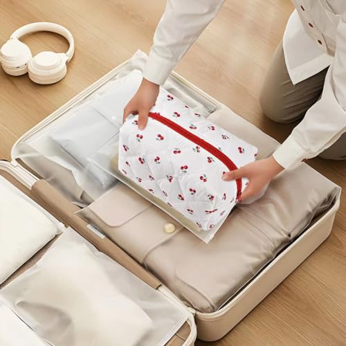 Floral Makeup Bag,Floral Quilted Makeup Pouch,Large Cosmetic Bag,Fashionable Travel Makeup Pouch, Cute Cherry Make up Bag,Puffy Coquette Makeup Bag, Attractive Quilted Make up Bag