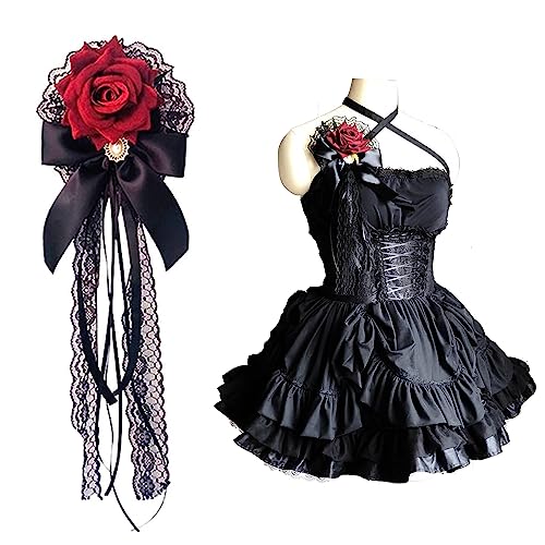 Flower Hair Combs, Rose Bow Hairpin Lace Ribbon ElegantCute Retro Handmade Hair Bride Accessories for Party Wedding Red Birthday Halloween Cosplay Women Girl Decoration