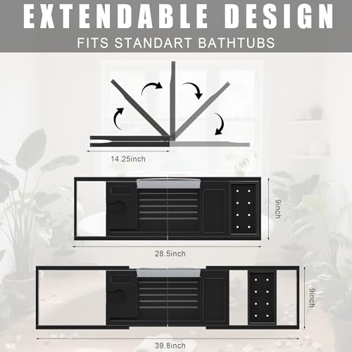 Foldable Bathtub Caddy Tray for Tub,Bamboo Expandable Bath Table Trays,Premium Bathroom Accessories for New Home & Mothers Day & Birthday Gifts for Couples,Black