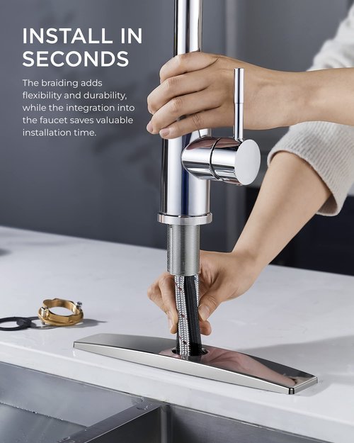 - Minutes to Install: Install the FORIOUS faucet for kitchen sink in under 15 minutes with no professional help. It features a 10-inch detachable deck plate for one, two, or three-hole sinks and includes all mounting hardware for a hassle-free setup