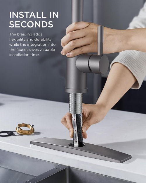 - Minutes to Install: Install the FORIOUS faucet for kitchen sink in under 15 minutes with no professional help. It features a 10-inch detachable deck plate for one, two, or three-hole sinks and includes all mounting hardware for a hassle-free setup