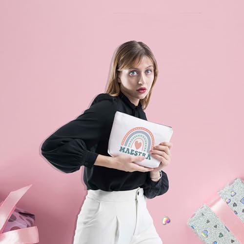 FOTAP Maestra De Espanol Gift Maestra Spanish Teacher Makeup Bag Spanish Bilingual Maestra Teacher Gift Teacher Appreciation Gift Retirement Gift (Maestra)
