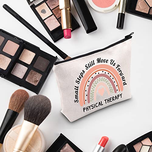 G2TUP Small Steps Still Move Us Forward Makeup Bag Physical Therapy Cosmetic Bag PT Gift Thank You Gift (White Bag)