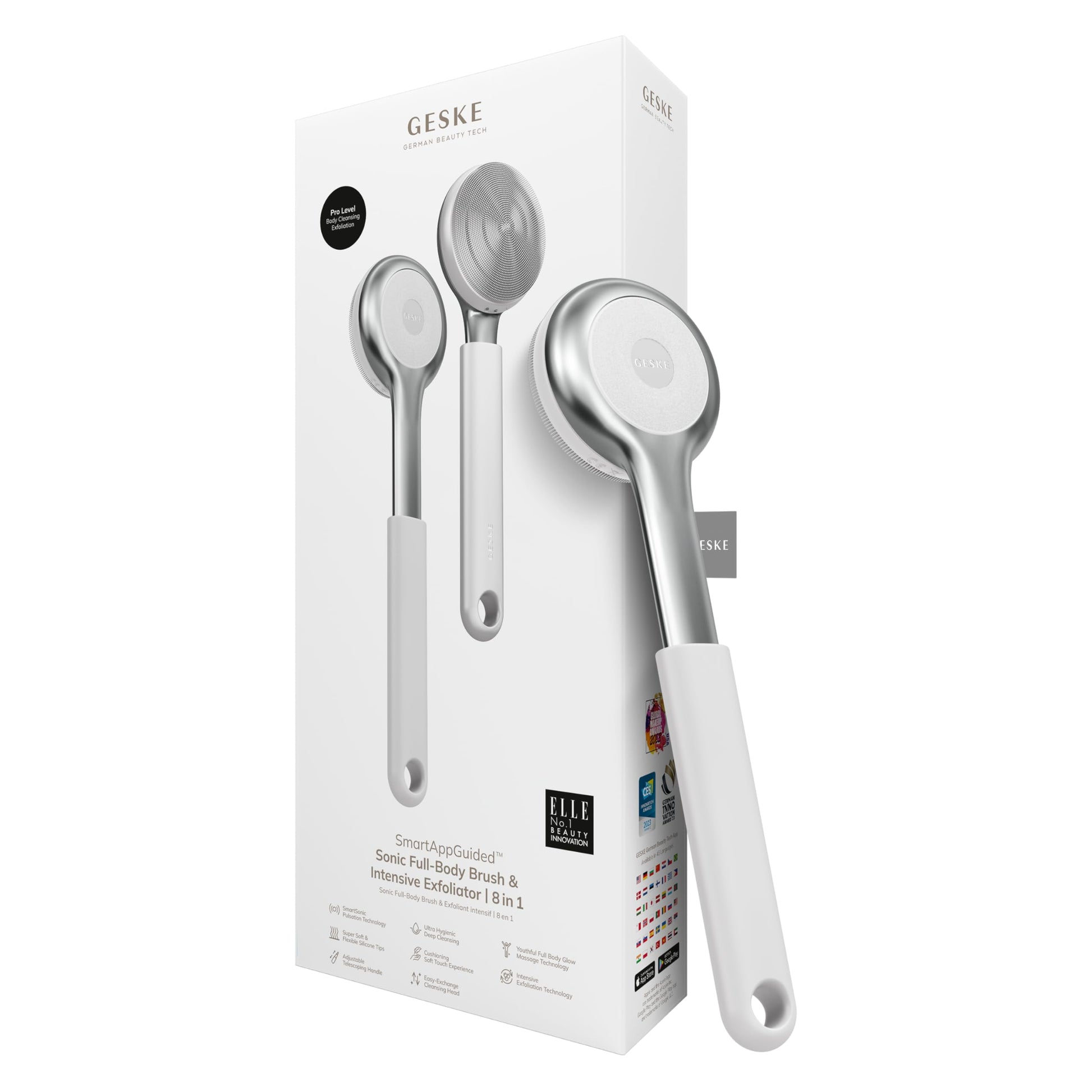 GESKE Sonic Full-Body Brush & Intensive Exfoliator | 8 in 1 | Electric Body Cleansing Brush | With SmartSonic Pulsations | Deep Cleansing, Exfoliation, Massage | Extendable Handle | Rough Skin Remover