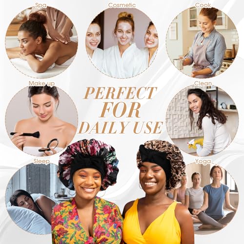 Geyoga 12 Pcs Sleep Bonnet Bulk Satin Bonnets for Sleeping Silk Hair Bonnet for Sleeping Women Large Silk Bonnets for Black Women with Elastic Band for Hair Care