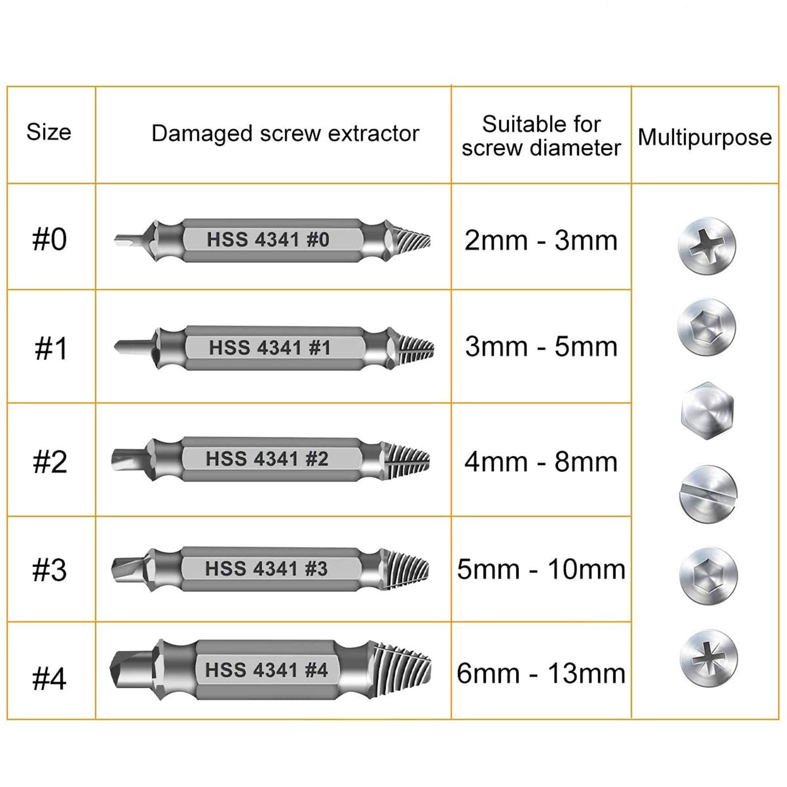 - HIGH QUALITY - This damaged screw remover tool kit is made from High-Speed Steel H.S.S 4341# , which have high hardness of 63hrc, it's durable and easily to remove any damaged screws.