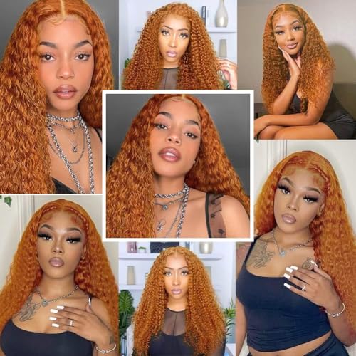 - HD Transparent Lace of Curly Ginger Orange Human hair Wigs for Black Women£ºGinger Deep Wave glueless wigs Human hair pre plucked,13x4 HD Transparent Lace Frontal, Comfortable and Breathable ,Super Small Bleached Knots to make natural look,Ginger Deep wave lace front wigs human hair pre plucked Natural Hairline with Baby Hair, Invisible Lace fits any skin.