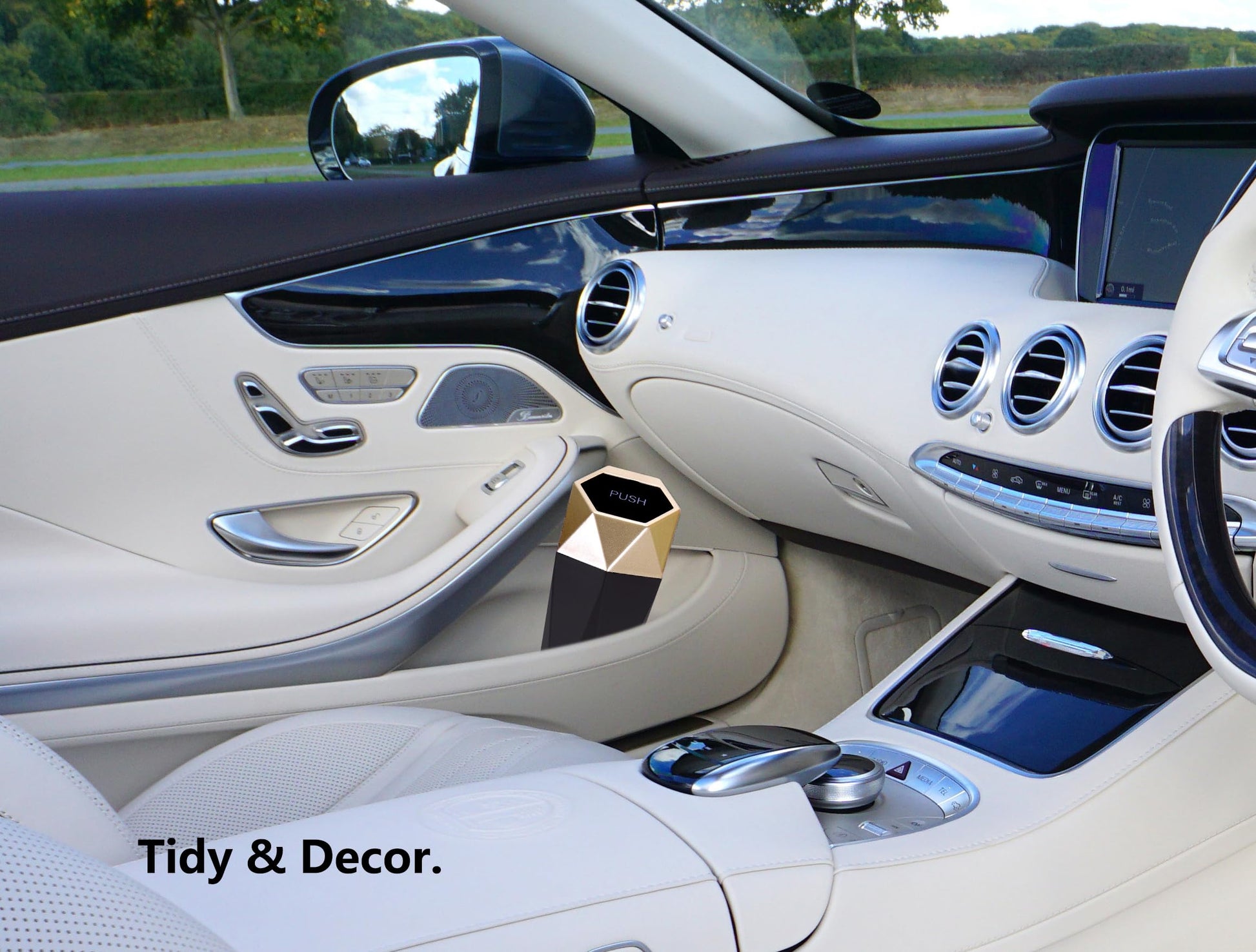 - [MULTIPURPOSE-USE] - Diamond cut design is fashionable. Compact trash can is a good solution for ashtray, gum and candy bar wrappers in the vehicle. Car trash can with lip can also be used as a tiny household or desktop trash receptacle in places other than your cars, such as an office, kitchen, or bedroom to keep the space clean and organized.