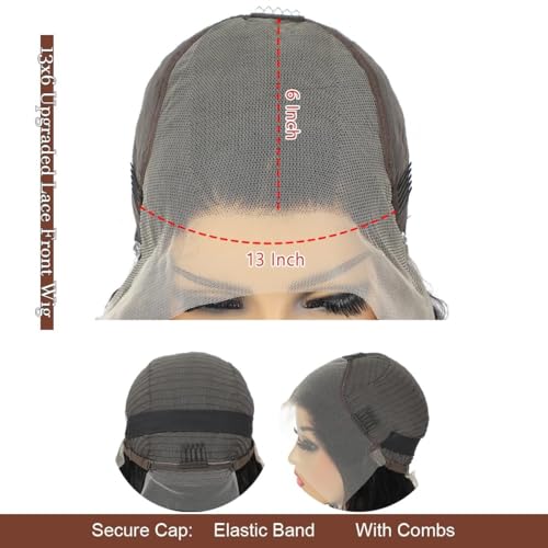 - 13x6 Lace Front Wig Cap Size: Default medium size elastic cap ( 22.5 Inches) with 4 combs and adjustable band to wear it glueless, fit your head perfectly, pre plucked hairline with baby hair around, looks more realistic and natural