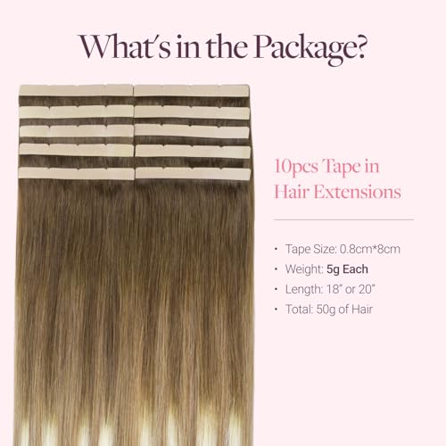 GOO GOO Tape in Hair Extensions Human Hair, 3/8/613 Walnut Brown to Ash Brown and Bleach Blonde, 8cm Wide Tape, 20inch 10pcs 50g, Tape Weft Hair Extensions, Real Human Hair, Seamless Tape in