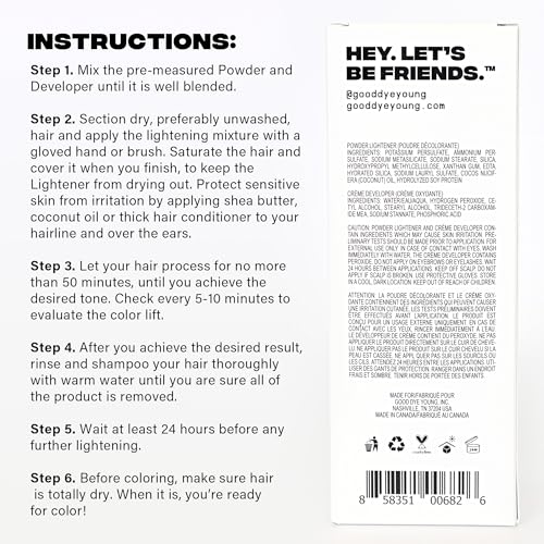 Good Dye Young Hair Lightener Kit with Dust Free Powder Lightener and 25 Volume Developer - Moisturizing Bleaching Kit - Vegan Hair Bleach (4 oz.)