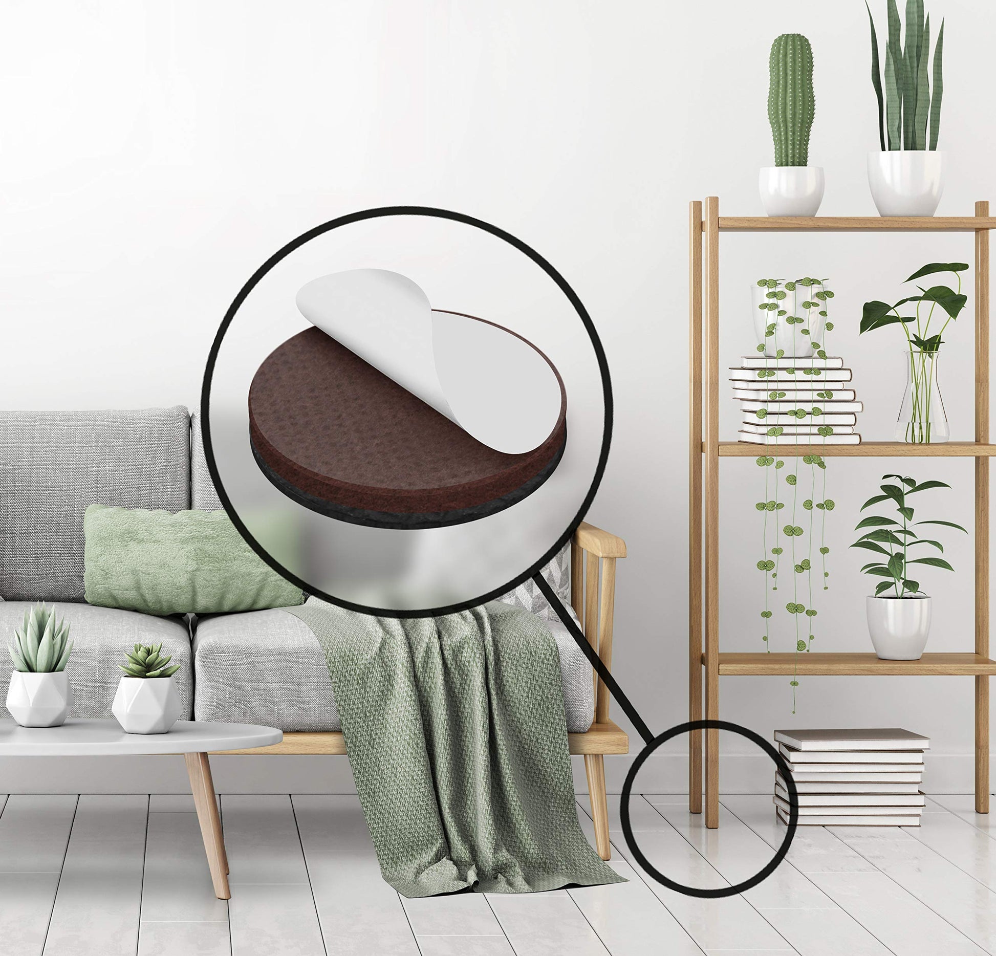 - Heavy duty self adhesive to stay attached to furniture – each 1” round gripper pad features a strong adhesive backing for quick and easy attachment under furniture. Simply clean off furniture feet, peel off the adhesive backings, and stick on adhesive non slip furniture pads.