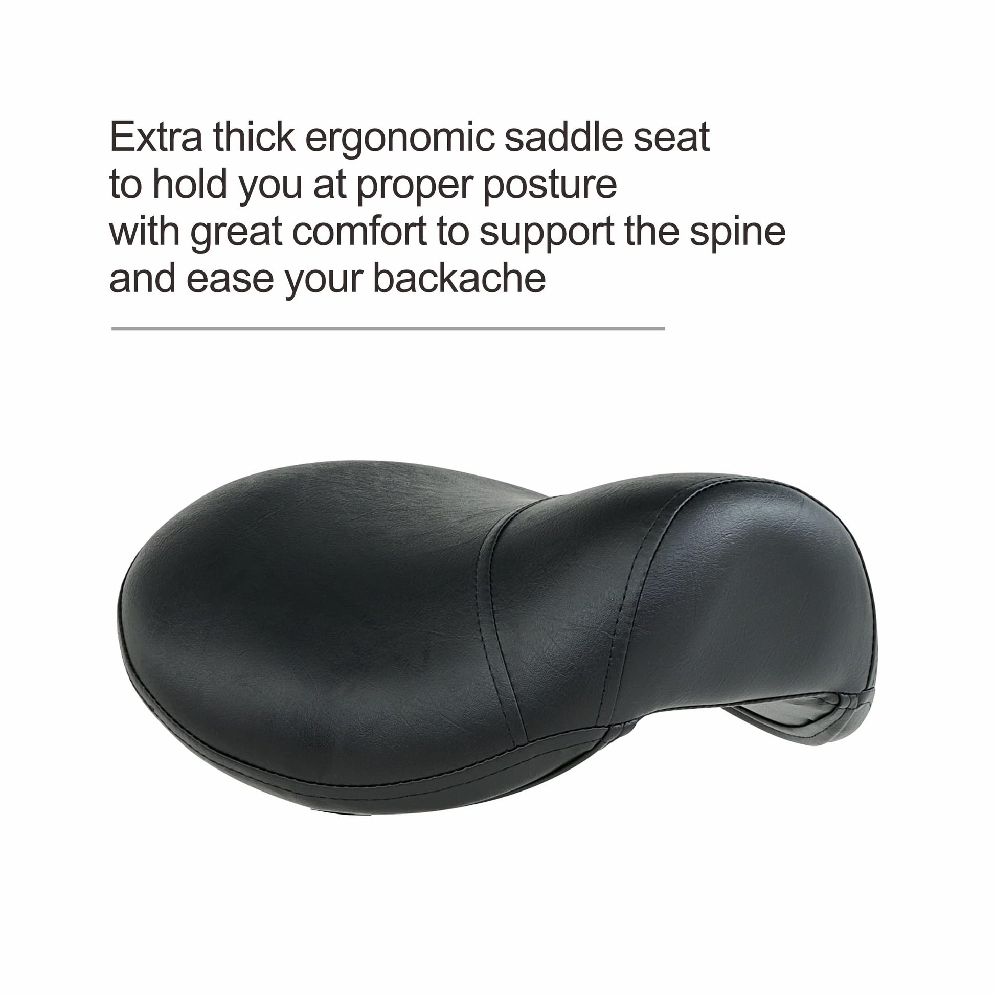 - Exquisite Craftsmanship: The saddle chair's seat cushion is crafted from fresh high-density foam and premium PVC leather, with impeccable stitching that extends to the unseen underside, guaranteeing both longevity and visual appeal, outclassing the recycled foam seats in the market.