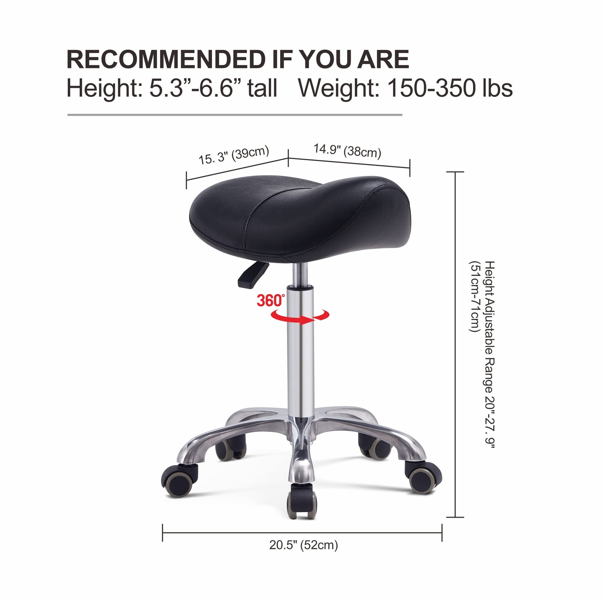 - Superior Weight Capacity: Combined with a heavy-duty metal base and structural screws, our saddle stool with wheels can support up to 350-450 pounds. Equipped with a cylinder that has passed both SGS and TUV certifications, it provides double the safety assurance for your use.