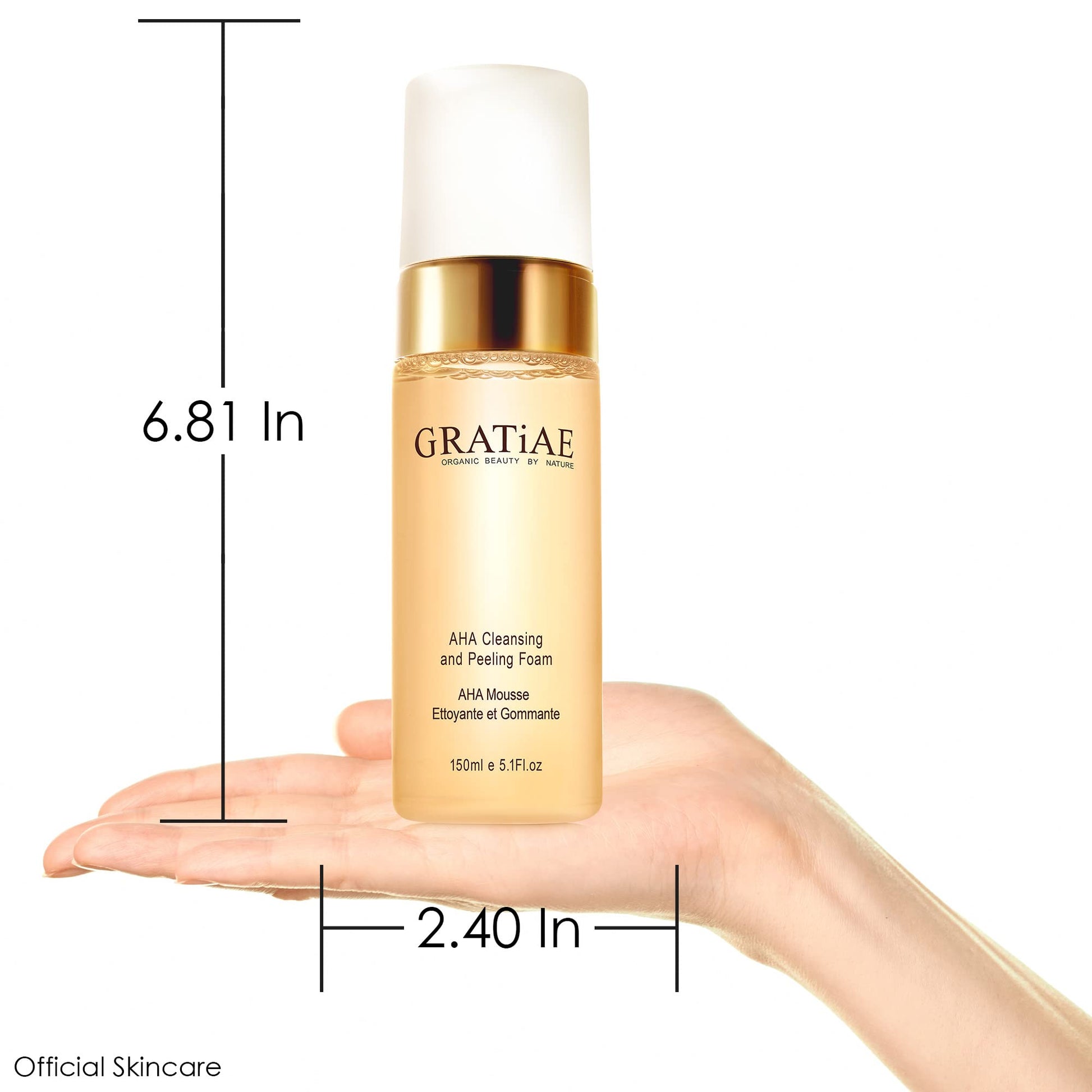 Gratiae organics, AHA Cleansing and Peeling Foam face wash, non-drying facial cleanser for sensitive, acne & allergy prone and all Skin Types, facial cleanser. 5.1 Fl. Oz
