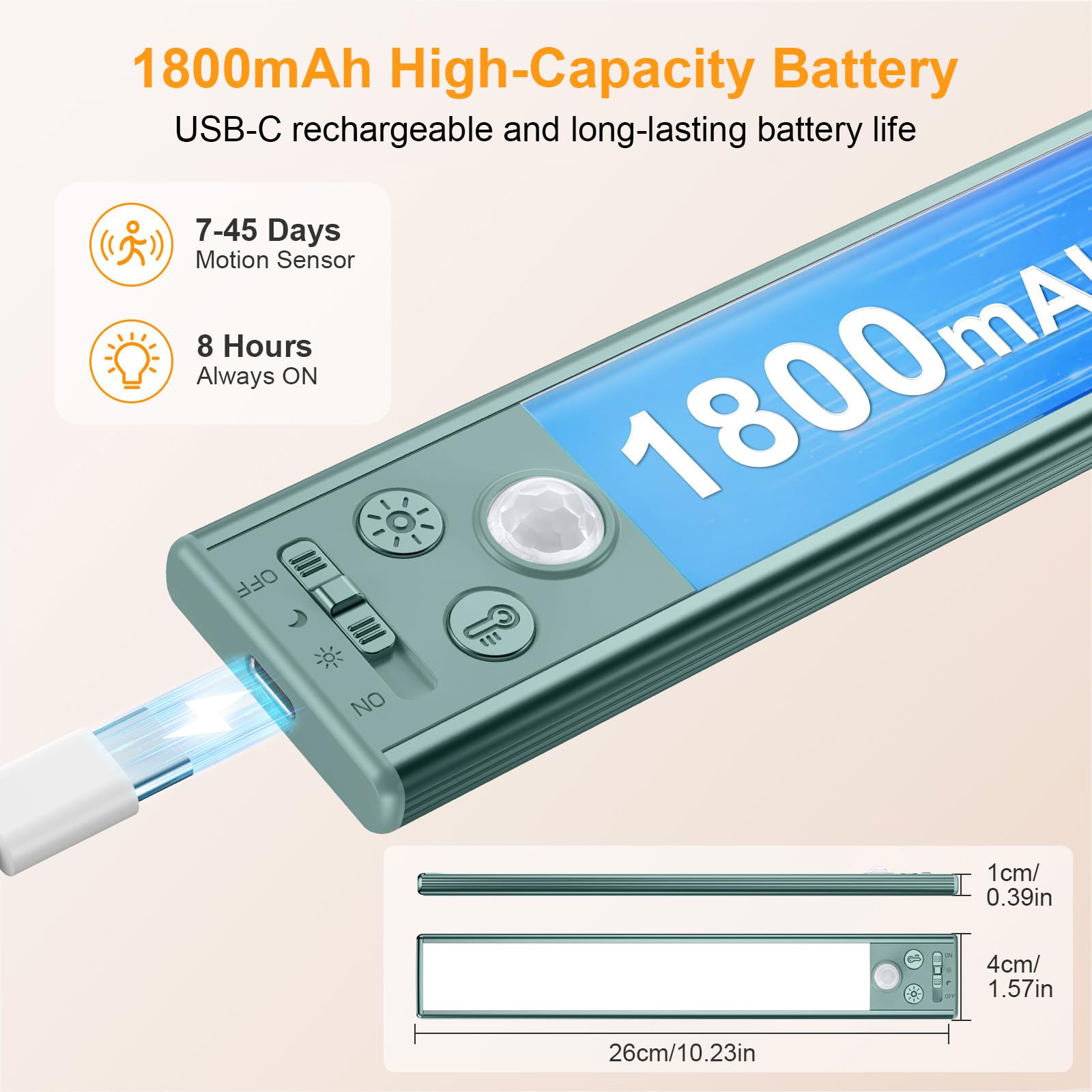 - USB-C Rechargeable & Long-lasting: Built-in 1800mAh high-capacity battery, it offers up to 8 hrs in high brightness mode and lasts 45 days in sensor mode. It can be easily recharged by the type-C cable, no need to charge frenquently. It's the perfect choice for upgrading your home lighting! (2 USB-C cables included)