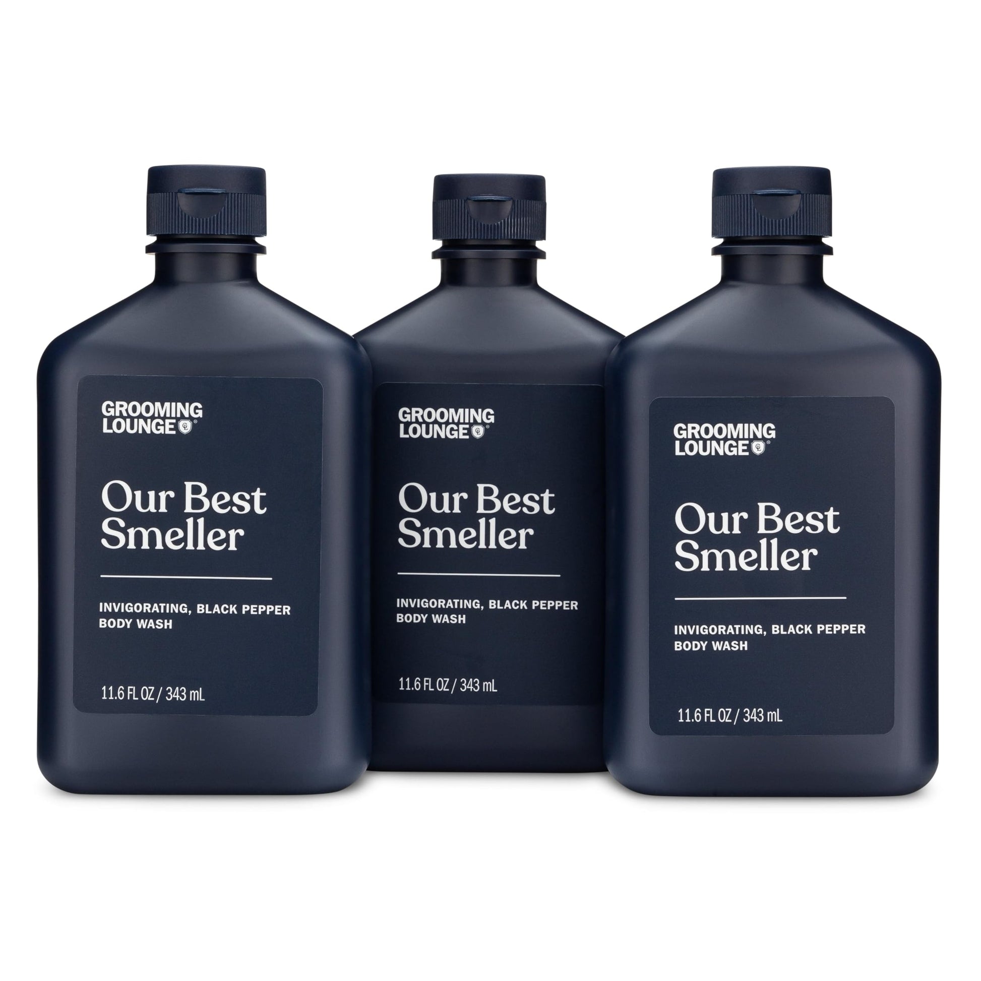 Grooming Lounge Our Best Smeller Body Wash - Moisturizing, Clarifying Travel Shower Scrub - Fresh, Classic, Suave Fragrance of Acai, Aloe Vera, Seaweed, and Black Pepper - Dry Skin Defense - 3 pack