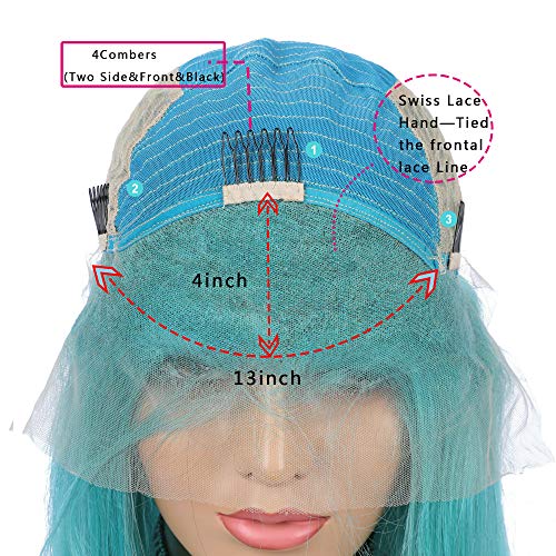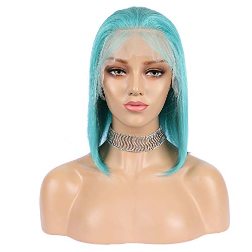 Guanyuhair Pre-plucked Short Bob Human Hair Lace Front Wigs Glueless Silky Straight 150% Full Density #Light Blue Free Part Bob Wigs For Black Women(12inch, Light Blue)