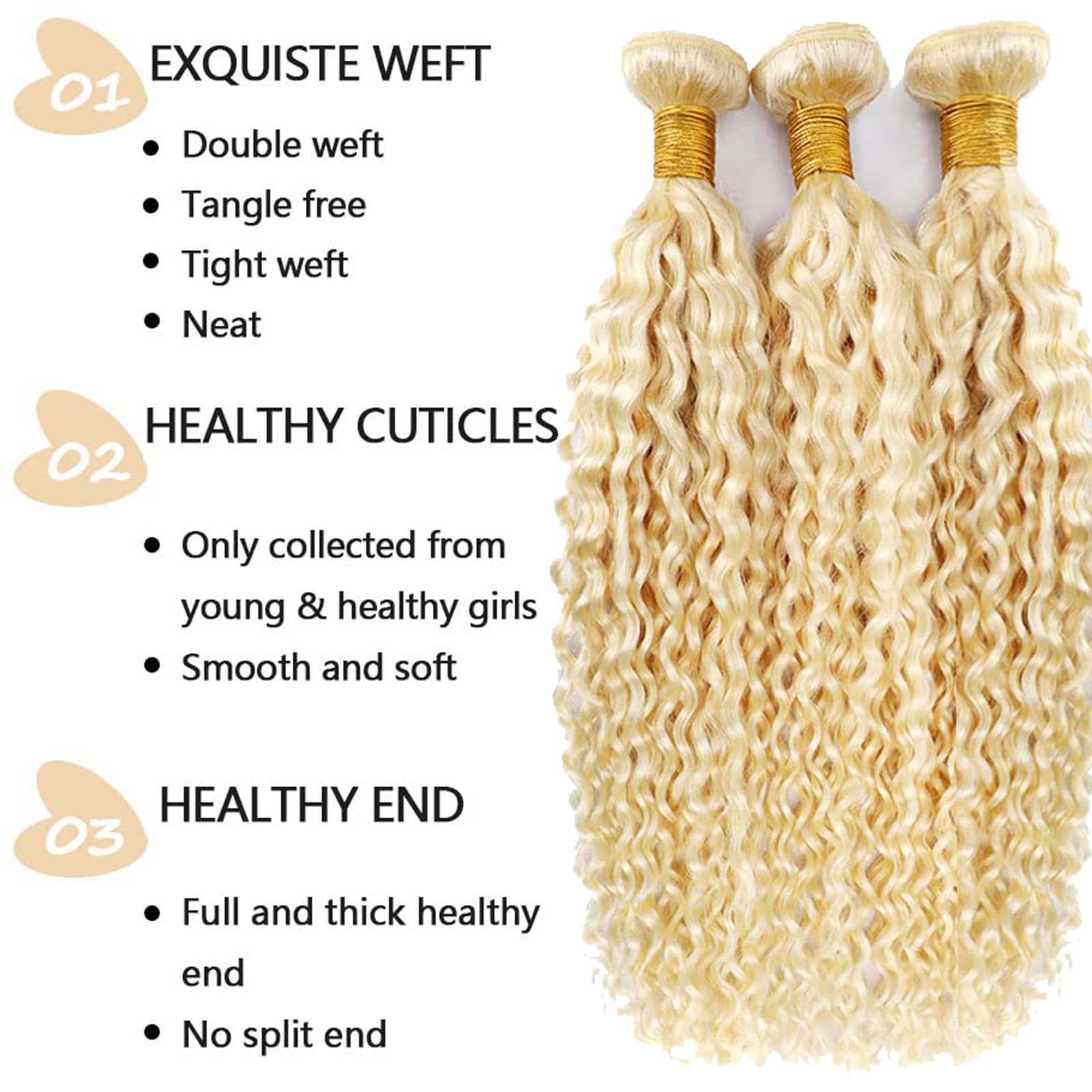 - ☘️Blonde 613 Human Hair Bundles Material☘️:Unprocessed Brazilian Virgin Blonde 613 Human Hair Bundles,Habiliana Wave Blonde 613 Human Hair Bundle, Soft and Healthy to Make Sew In or Wigs.