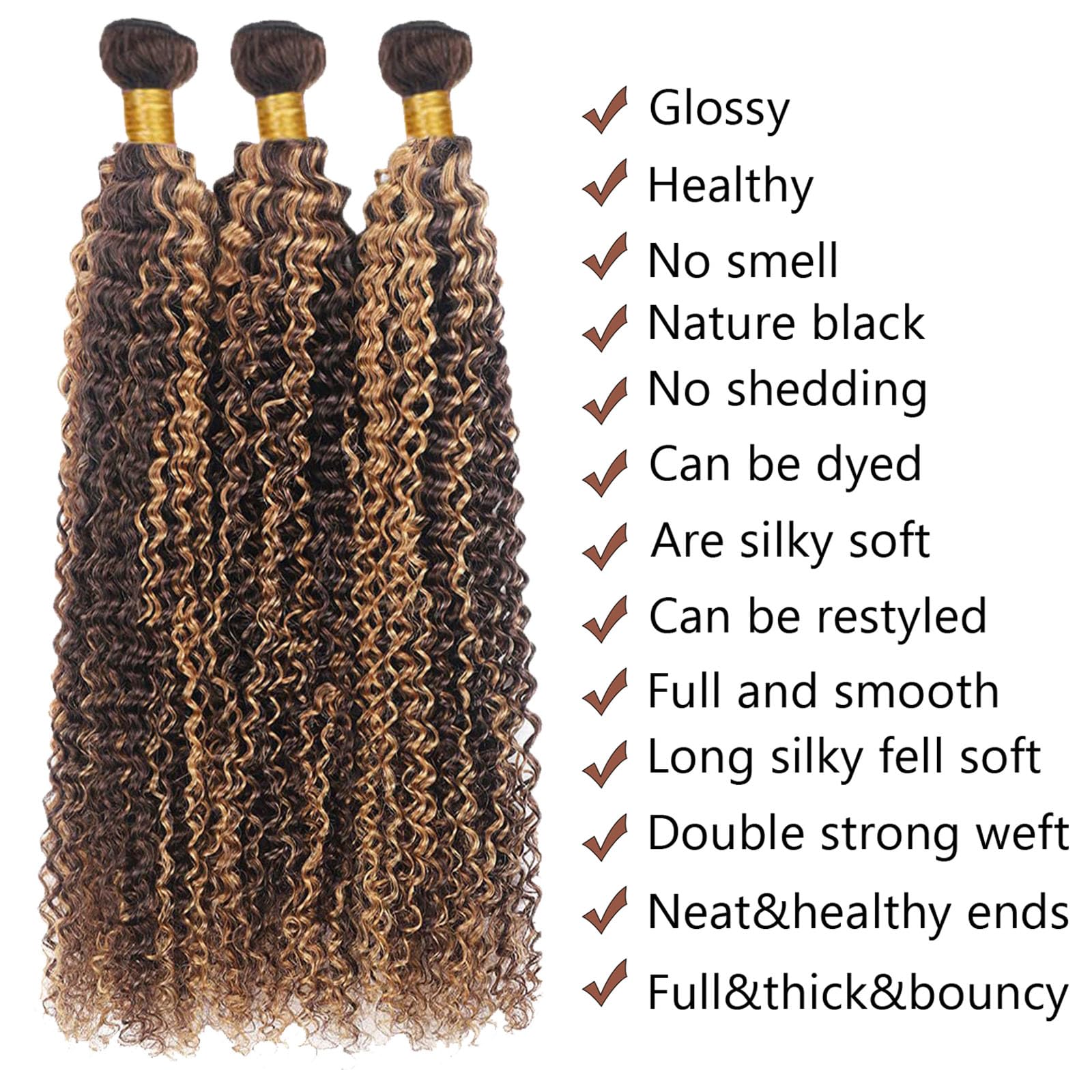 - ☘️P4/27 Human Hair Bundles Material☘️:Unprocessed Brazilian Virgin P4/27 Human Hair Bundles,Habiliana Wave P4/27 Human Hair Bundle, Soft and Healthy to Make Sew In or Wigs.
