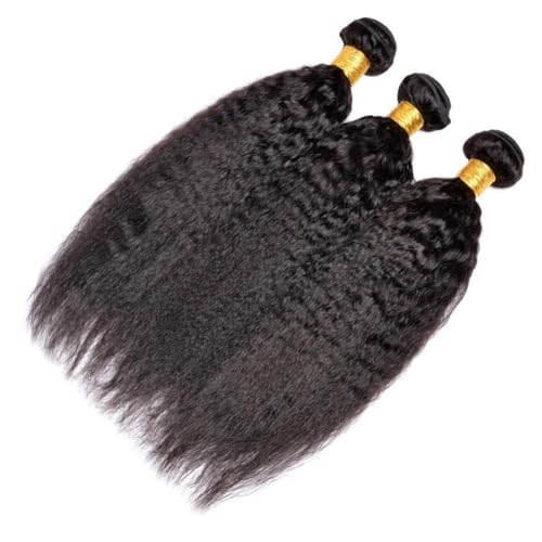 Hair Bundles 12A Yaki Kinky Straight Human Hair 3 Bundles 100% Unprocessed Mongolian Virgin Human Hair Kinky Straight Bundles Yaki Hair Natural Color (18 20 22)