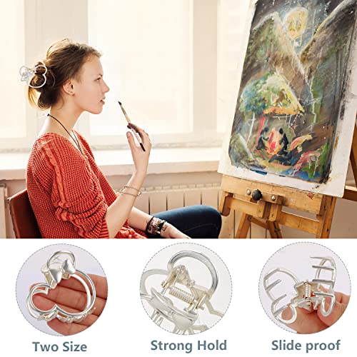 Hair Clip, 2Pcs Metal Silver Hair Claw Clips for Thick Heavy Hair, Mouse Head Hollow Out Non-slip Hair Catch Barrette Jaw Clamp Fashion Hair Styling Accessories for Women