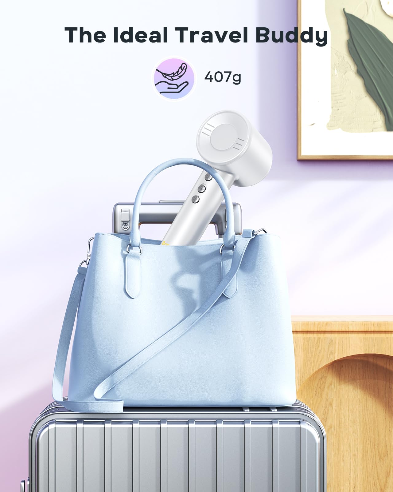 Hair Dryer - Negative Ionic Blow Dryer with 150000 RPM High Speed Brushless Motor for Fast Drying, Low Noise, HD Display Hair Dryer with Diffuser and Nozzle, 4 Temps & 3 Speeds