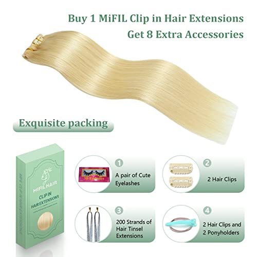 - Easy Wearing &Quick Styling:These Clip in Hair Extensions Can be Washed,Heat Styled, and Dyed Like Your Own Hair. Mifil Hair Extensions Clip in Human Hair is the Easiest Way to Get Longer,Thicker Hair in Minutes,Can Blend Perfectly with Your Hair,No Damage to Scalp and Hair.